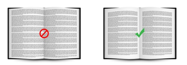 Damit wichtige Lese- bzw. Gestaltungselemente bei der Weiterverarbeitung des Buchs nicht verloren gehen, müssen Seitenränder zum Buchrücken (Bundsteg) für gegenüberliegende Seiten so festgelegt werden, dass zusätzlicher Leerraum am Seitenrand für den Bindeprozess gelassen wird. Wir empfehlen in Ihrem Layout einen Bundsteg von mindestens 2 cm einzuplanen.
